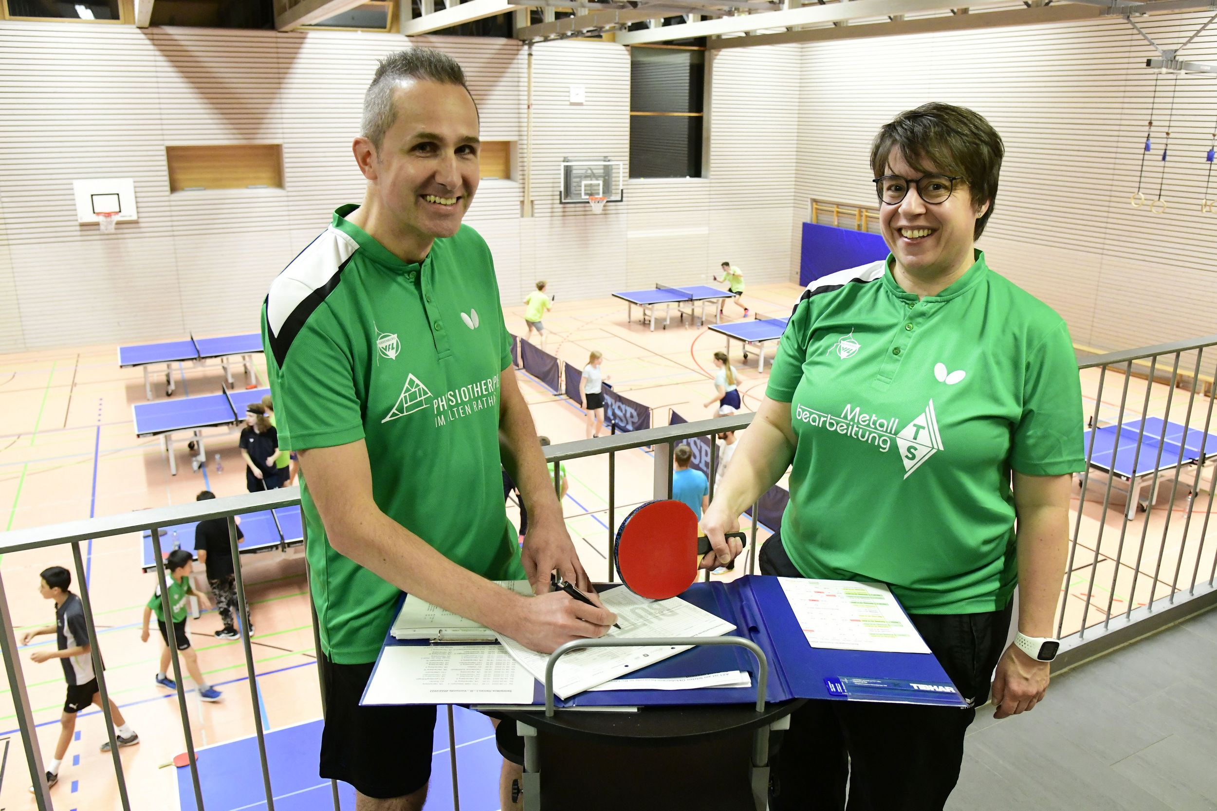 Wie großräumig dieser Rahmen gesetzt ist, verdeutlichen die Tätigkeiten, die das Sportler-Ehepaar im Ehrenamt wahrnimmt. Die 49-jährige Sonja Kugler ist seit einigen Jahren als Kassiererin für die Finanzen zuständig, beschränkt sich in ihrem Engagement allerdings nicht nur auf das gewählte Amt. So ist sie seit (Wieder-)Gründung der Damen-Mannschaft Mitte der 2000er Jahre eine wichtige Anlaufstelle im Team, war eine Zeit lang als Jugendtrainerin und betreuerin aktiv und hilft zudem während Tischtennisveranstaltungen bei der Bewirtung. Zudem kümmert sie sich um Reparaturarbeiten im Tischtennisumfeld, ist Kontaktperson zu den Hausmeistern – und vieles mehr.